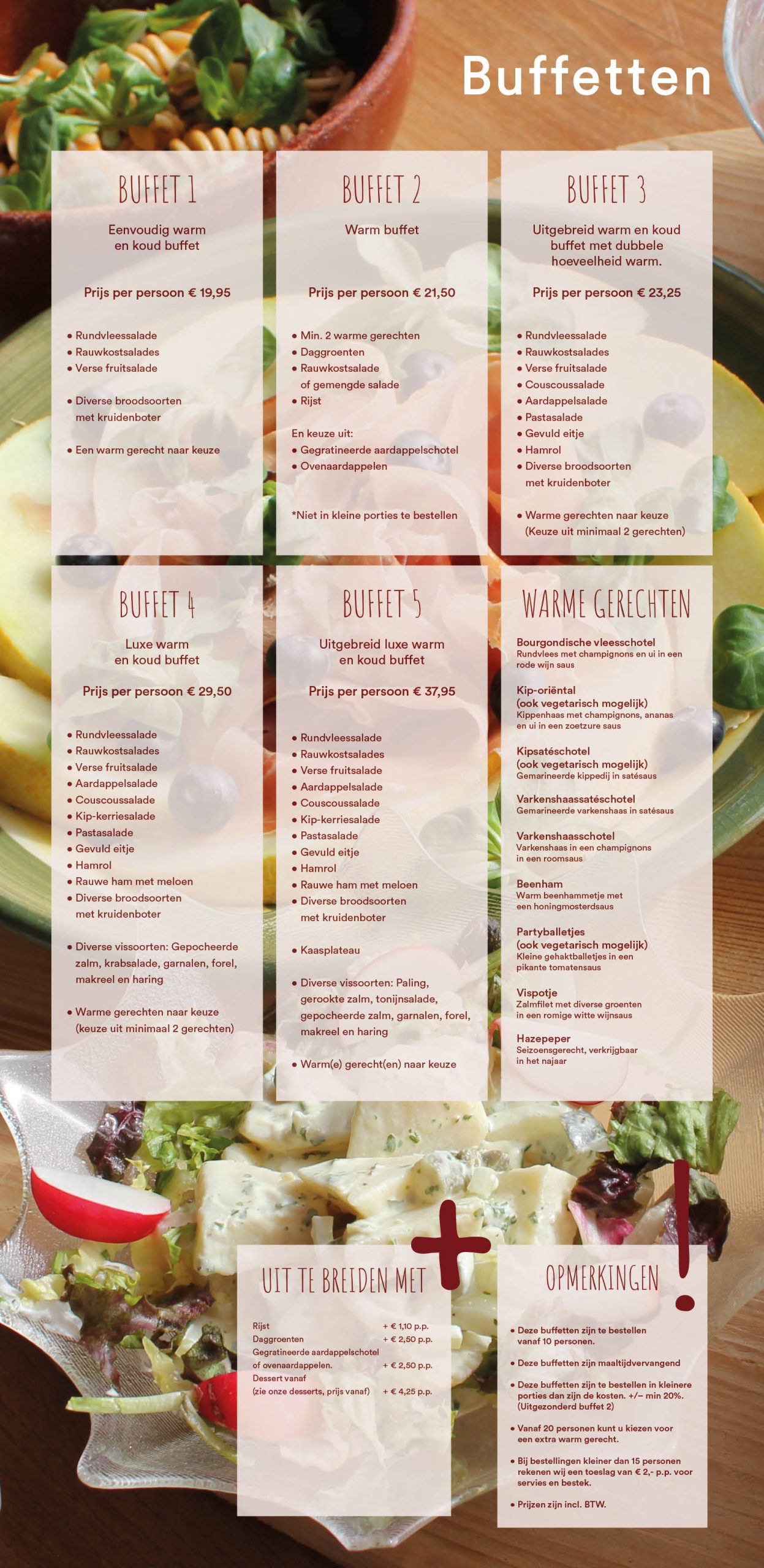 Een uitgebreide selectie aan buffetten. Of u nu gaat voor simpel of heel uitgebreidt. Er is voor ieder wat wils.